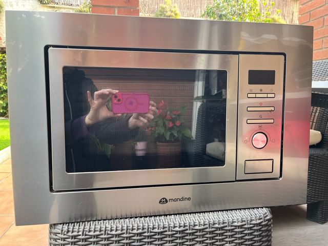 Microondas encastrable de la marca Mandine, en buen estado y funcionando correctamente. - Diseño moderno en acero inoxidable. - Panel de control intuitivo.