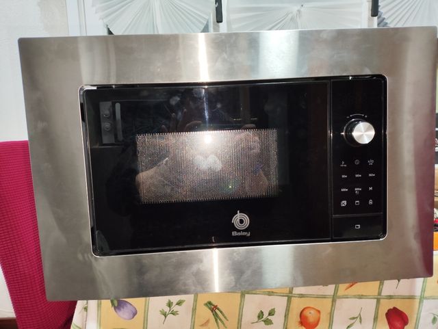 Microondas integrable Balay. Está con muy poco uso. Se enciende bien, pero cuando le das a calentar saltan los plomos. Para reparar o piezas.
