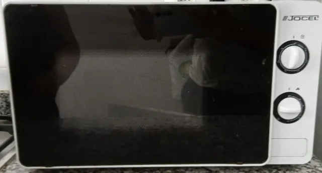 Microondas de la marca Jocel en color blanco. - Diseño compacto. - Dos mandos giratorios para control de tiempo y potencia. Precio negociable