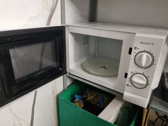 Detalles del productoMicroondas de la marca Kunft en color blanco. Cuenta con dos mandos giratorios para ajustar el tiempo y la potencia.
