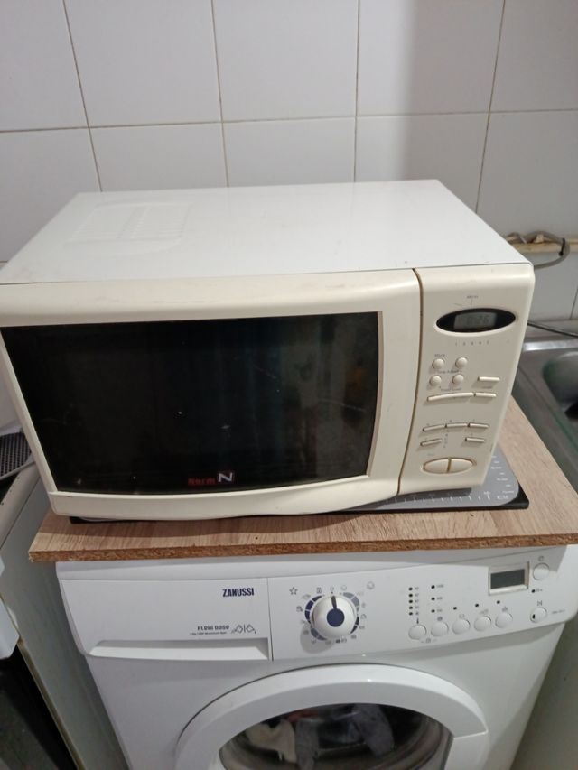 Microondas de color blanco con panel de control. Funciona perfectamente ,lo único algúna rallita del tiempo de ai su precio. - Marca: Norm N - Color: Blanco