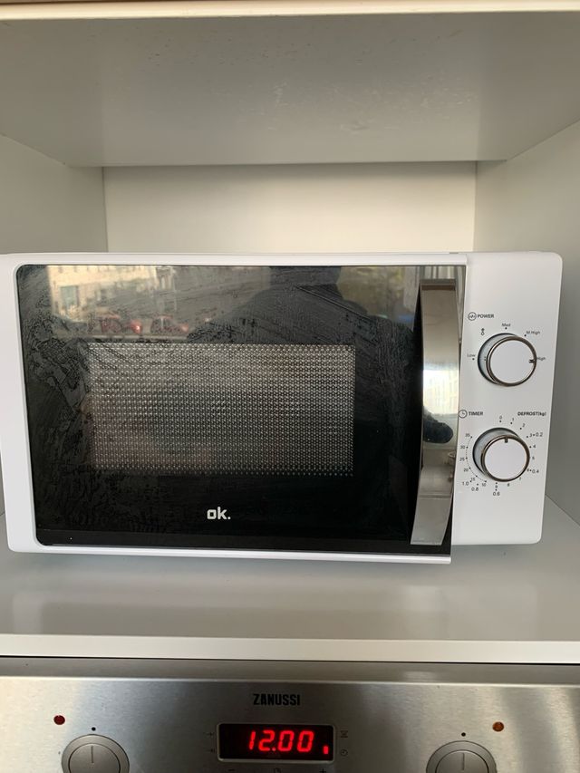 Microondas de la marca OK, adquirido en MediaMarkt. Su diseño es blanco y compacto, ideal para cualquier cocina. - Color blanco. - Marca OK. - Modelo de MediaMarkt.