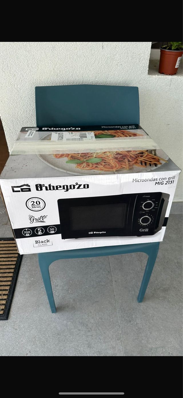 Microondas con función grill de la marca Orbegozo. - Capacidad de 20 litros. - Potencia de 700W. - Temporizador de hasta 30 minutos. - Color negro.