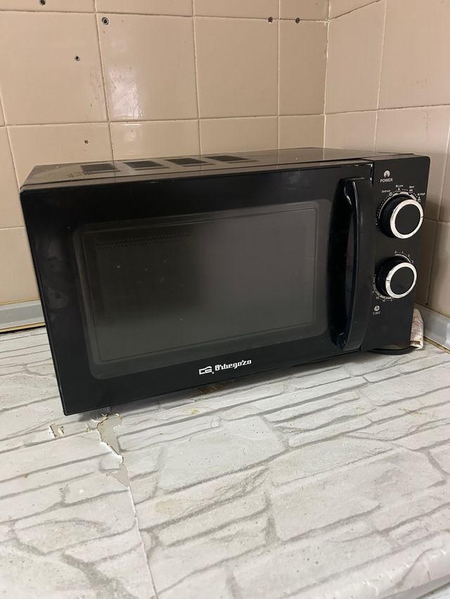 Microondas de color negro, marca Orbegozo. Ideal para tu cocina. - Diseño moderno. - Panel de control con mandos giratorios.