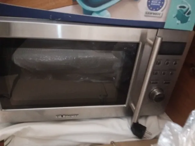 Microondas de acero inoxidable con acabado plateado. - Diseño moderno y elegante. - Panel de control digital.