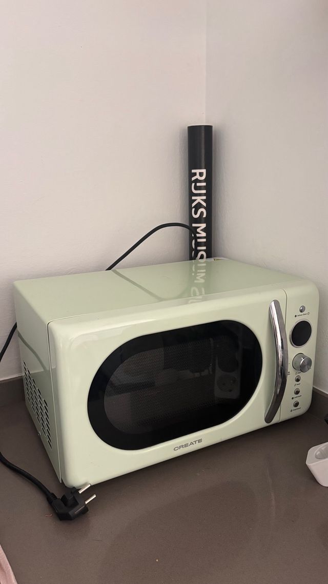 Microondas de diseño retro en color verde, de la marca Create. Ideal para dar un toque vintage a tu cocina.