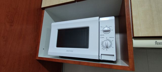 Detalles del productoMicroondas Saivod en color blanco, con una capacidad de 20 litros.