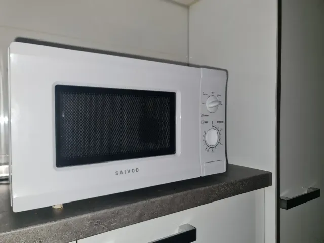 Detalles del productoMicroondas de color blanco de la marca SAIVOD.