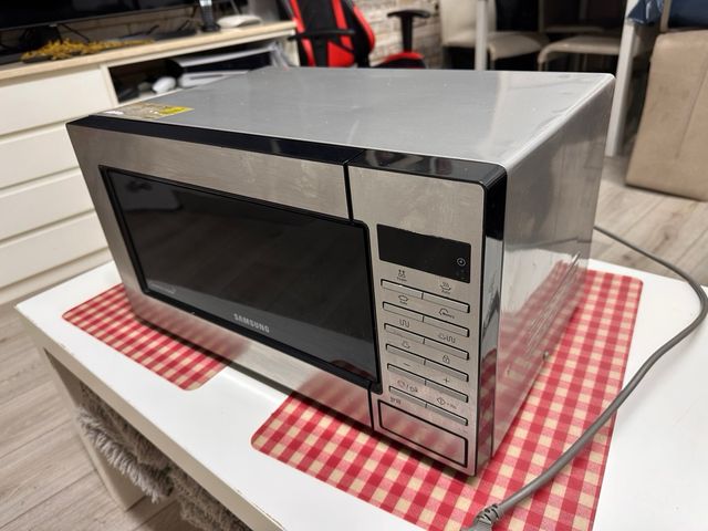 Detalles del productoMicroondas Samsung modelo GE87M-X con acabado en acero inoxidable.