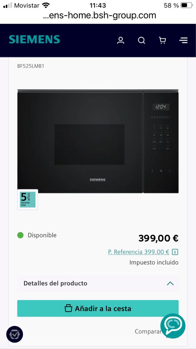 Microondas Siemens modelo BF525LMB1 en color negro. Encastrable sin marco. Cristal negro. Plato 25,5cm. Embalado de fábrica. Esta sin estrenar, ni siquiera se ha sacado del embalaje. Precio en fabrica 399€. Nos consto 395€. Para una cocina que al final no se puso. Recogida en Ugena.
