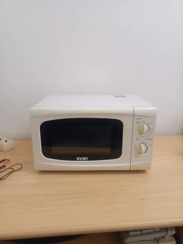 Detalles del productoMicroondas SVAN en color blanco. Funciona perfectamente,Diseño compacto y funcional. Sin plato de cristal de ahi su precio.