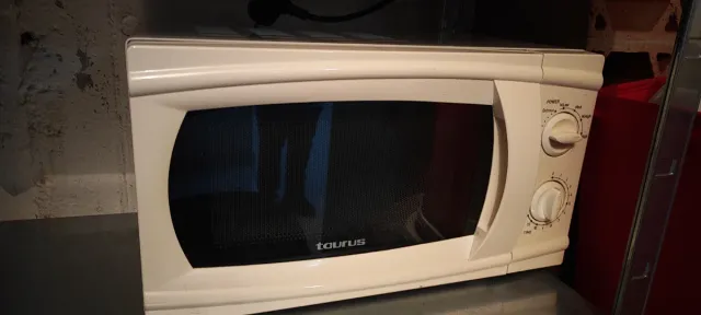 Microondas Taurus en color blanco. Un electrodoméstico práctico para tu cocina. - Diseño compacto. - Panel de control con mandos giratorios.