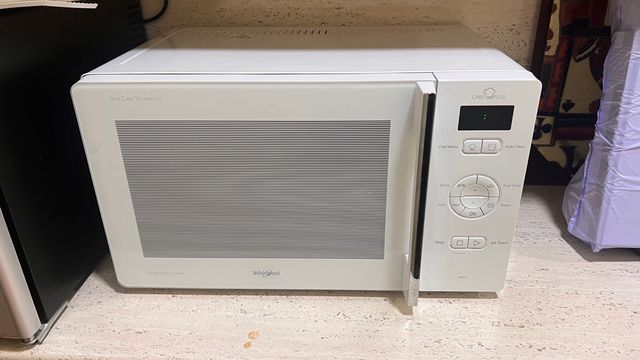 Detalles del productoMicroondas Whirlpool Chef Plus en color blanco. Se vende sin plato giratorio porque se rompió.