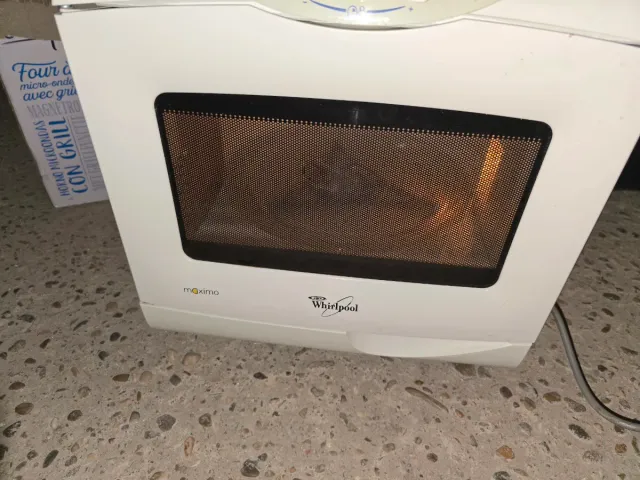 Microondas de la marca Whirlpool en color blanco. Cuenta con función grill. - Modelo: Maximo - Color: Blanco - Función grill