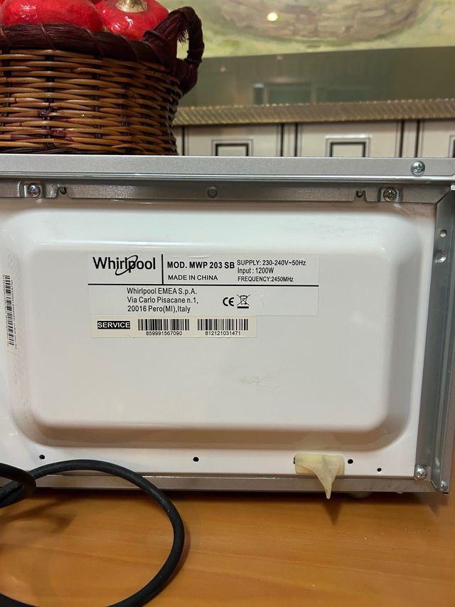 Detalles del productoMicroondas Whirlpool en perfecto estado, casi nuevo. Sus medidas son 45x32x26 cm.