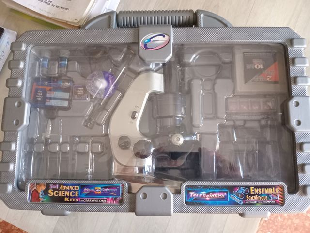 Detalles del productoKit de microscopio 3 en 1 Advanced Science Kits con maletín de transporte. Incluye varios accesorios para empezar a explorar.