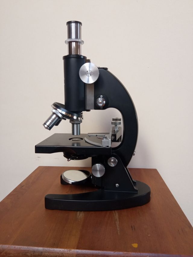 Detalles del productoMicroscopio marca japonesa HOC, años 1980. Dispone de tres objetivos acromaticos de 10x, 40x y 100x (este ultimo de immersión en aceite). Ocular Huygens de 5x, Condensador con A.N 1,25 y diafragma iris. Platina con movimiento X-Y de precisión. Enfoque macro y micrométrico. Tubo portaocular extensible para variar los aumentos. Está en perfecto estado optico, mecánico y estetico. Sistema de iluminacion por espejo. Un instrumento optimo para estudiantes y coleccionistas. Hago envios i escucho ofertas.