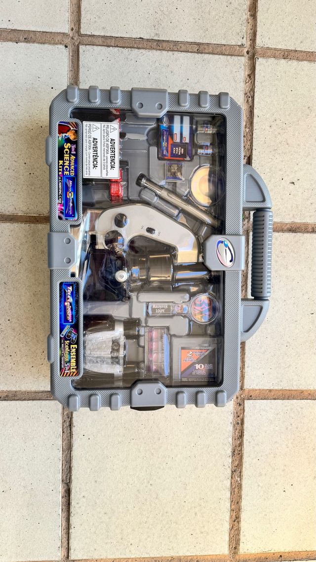 Detalles del productoKit de microscopio educativo Micro Science, ideal para iniciarse en el mundo de la ciencia. Incluye varios accesorios para la exploración.