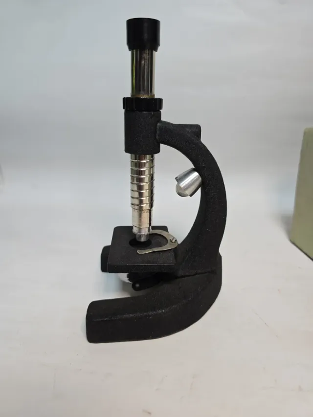 Detalles del productoMicroscopio escolar de la marca Omicron, un modelo vintage.
