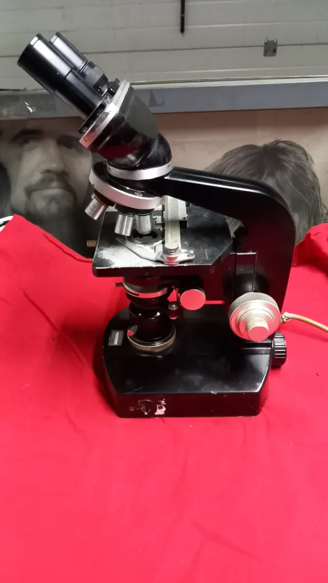 Microscopio Nikon en color negro. - Lentes binoculares. - Base estable.