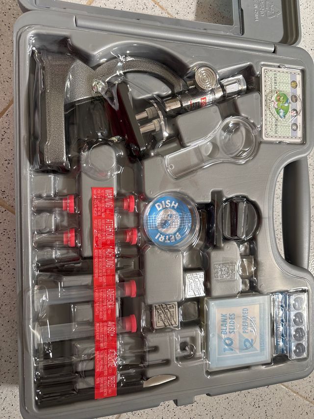 Detalles del productoKit de microscopio para niños, usado solo una vez. Incluye todo lo necesario para empezar a explorar.