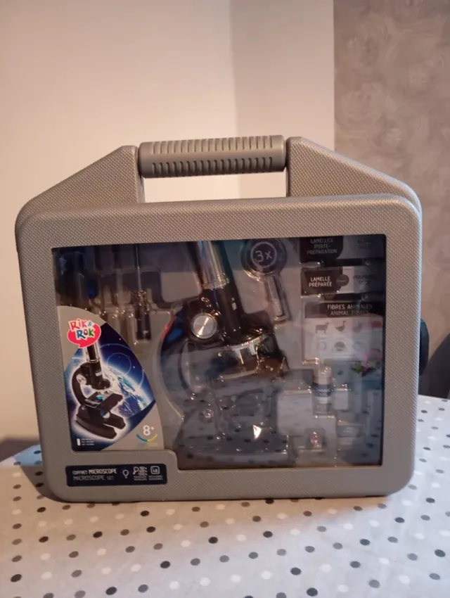 Detalles del productoSet de microscopio ROK con accesorios para iniciarse en la ciencia. Incluye todo lo necesario para empezar a observar.