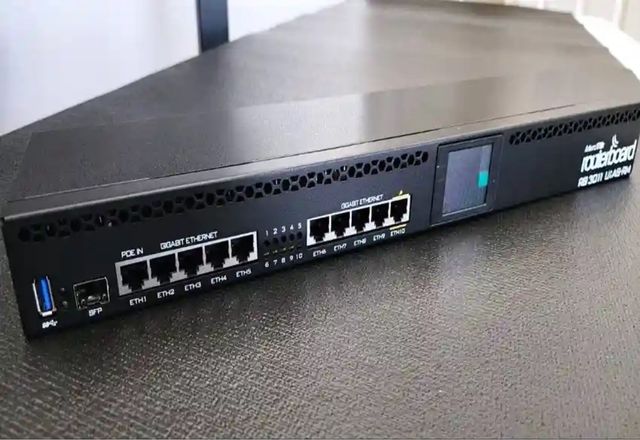 Router MikroTik RB3011 UIAG-RM con múltiples puertos Ethernet. Varias unidades - 10 puertos Gigabit Ethernet. - Puerto SFP. - Puerto USB. - Indicador LED.
