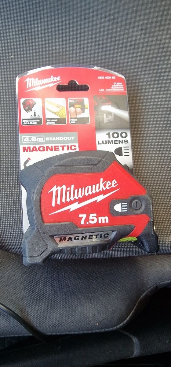 MILWAUKEE Flexómetro de 7,5 m con luz LED de 100 lúmenes – Recargable – Antigolpes