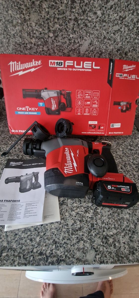 Marca: Milwaukee Milwaukee M18FHAFOH16-0 M18 FUEL - Taladro percutor inalámbrico SDS Plus de 16 mm con batería 5.0 y cargador rápido