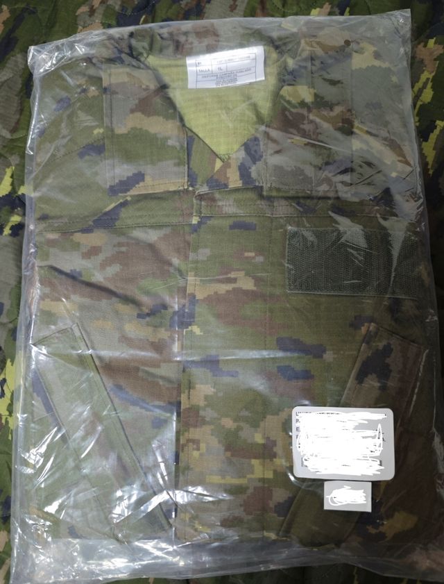 Uniforme militar de camuflaje boscoso, talla 1L. Ideal para actividades al aire libre. -Nuevo de paquete, a estrenar.