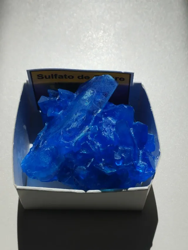 Cristales de sulfato de cobre (Cu SO₄·5H₂O) Preciosa recristalización de color intenso.