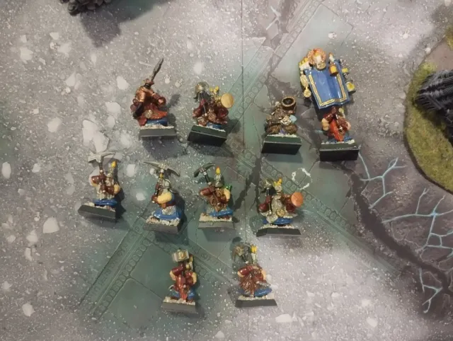 10 Figuras de mineros enanos para Warhammer. Pintados e imantados, listos para jugar. - Incluye varias miniaturas de infantería. - Detalladas figuras de fantasía.