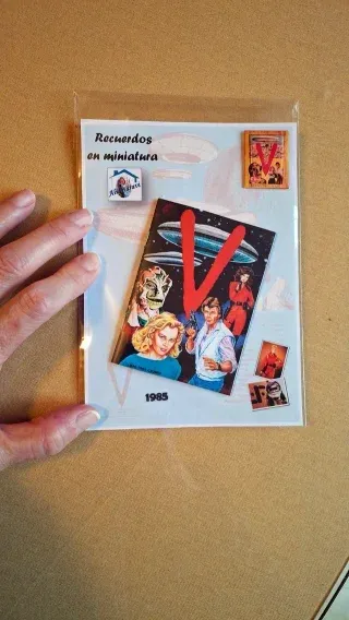 Detalles del productoÁlbum de cromos de la serie V (Los Visitantes) de 1985. Réplica hecha en miniatura con los cromos insertados. Una cucada en mano. Se presenta en una cartulina y dentro de una funda de plástico para su mejor conservación. Va anclado a una goma pero fácil de extraer al igual que el sobre que contiene cromos como los de verdad. Pieza ideal para coleccionistas. Regala nostalgia! También es estupendo como regalo de amigo invisible. Compra por wallapop o pago por bzm + 1€ de envío .Más álbumes en mi perfil.