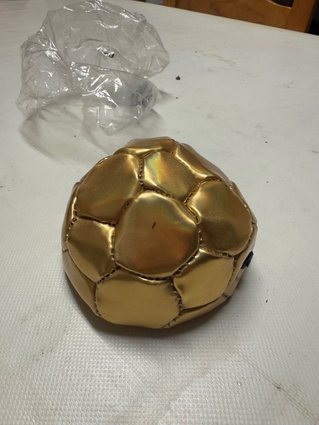 Mini balón de color dorado con un diseño moderno. Tamaño mini-balonmano. - Acabado brillante. - Paneles cosidos.