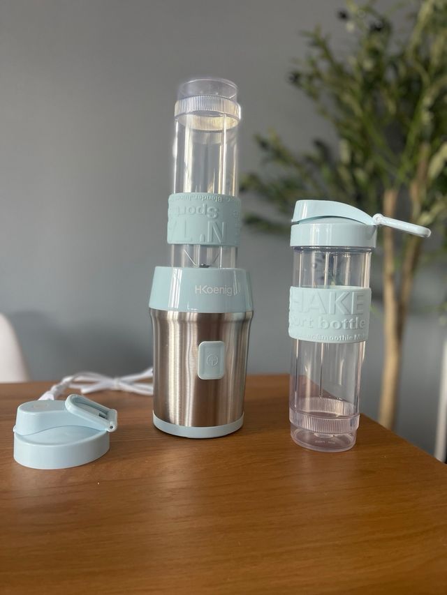 Detalles del productoH.Koenig Mini batidora Smoothie maker Compacto 570mL SMOO16 Sin BPA Potente 300W, Batidora de Smoothie 2 Botellas Portátiles, 4 Cuchillas de Acero Inoxidable, azul pastel.
