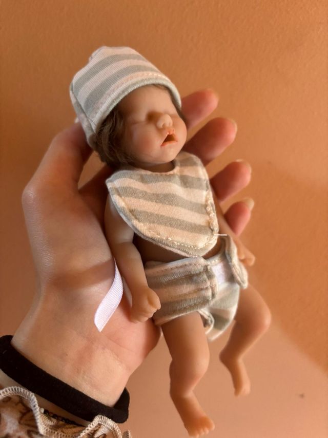 Detalles del productoPreciosos mini bebés reborn de silicona de 15 cm, perfecto para coleccionar o regalar. Hay dos modelos diferentes. Son nuevos. Vienen vestidos con un conjunto a rayas.