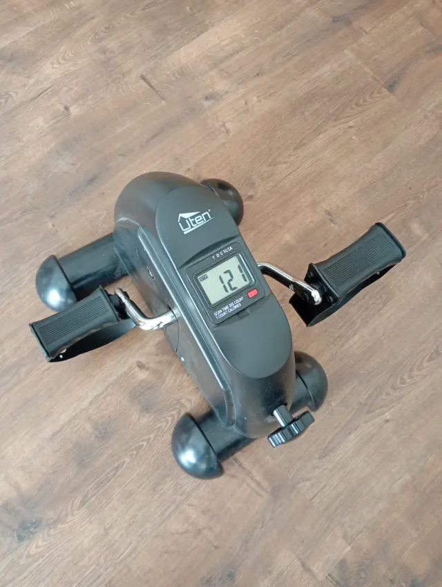 Detalles del productoMini bicicleta estática de la marca Uten, ideal para ejercitar piernas y brazos.