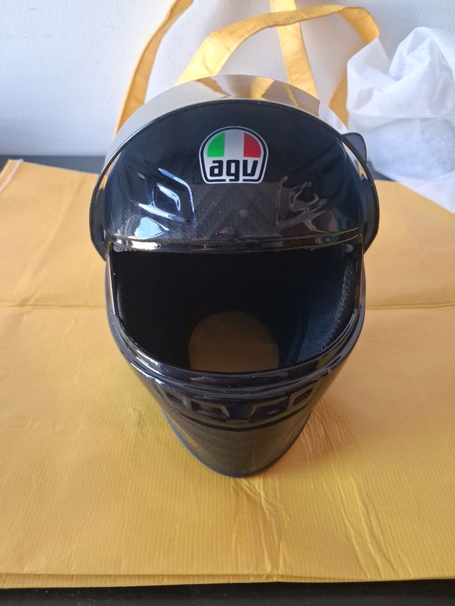 Réplica en miniatura del casco AGV con acabado en carbono. - Diseño deportivo. - Logo AGV con bandera italiana