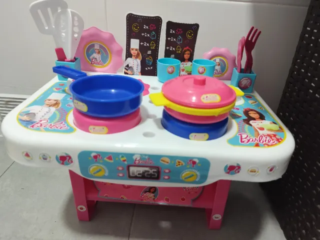 Detalles del productoDivertida mini cocina de juguete con temática de Barbie. Ideal para los más pequeños.