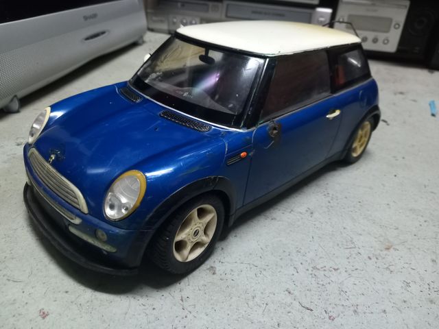 Detalles del productoMini Cooper de la marca Dickie Toys en color azul. Un coche radio control bastante usado y jugado pero que aun funcionaba cuando se guardó hace unos años. No incluye ni batería ni cargador porque ya no los tengo. Comprado en las navidades de 2002, escala 1/15