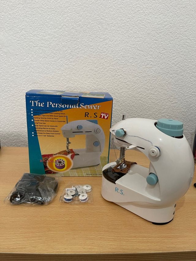 Detalles del productoMáquina de coser portátil The Personal Sewer R.S. SIN USAR EN SU CAJA Y PRECINTO ORIGINAL. Funciona con pilas o adaptador AC/DC.