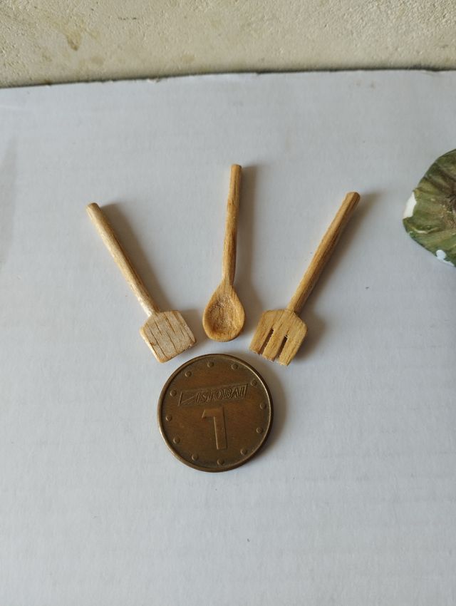 Mini paleta , rasera y cucharón de madera , artesanal , miden 4,5cm , escala 1:12 aprox, más en mi perfil
