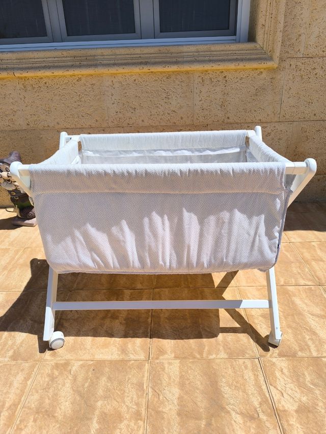 Detalles del productoPreciosa minicuna blanca, perfecta para recién nacidos. Es plegable y fácil de transportar, ideal para cualquier habitación tiene 4 ruedas giratorias.