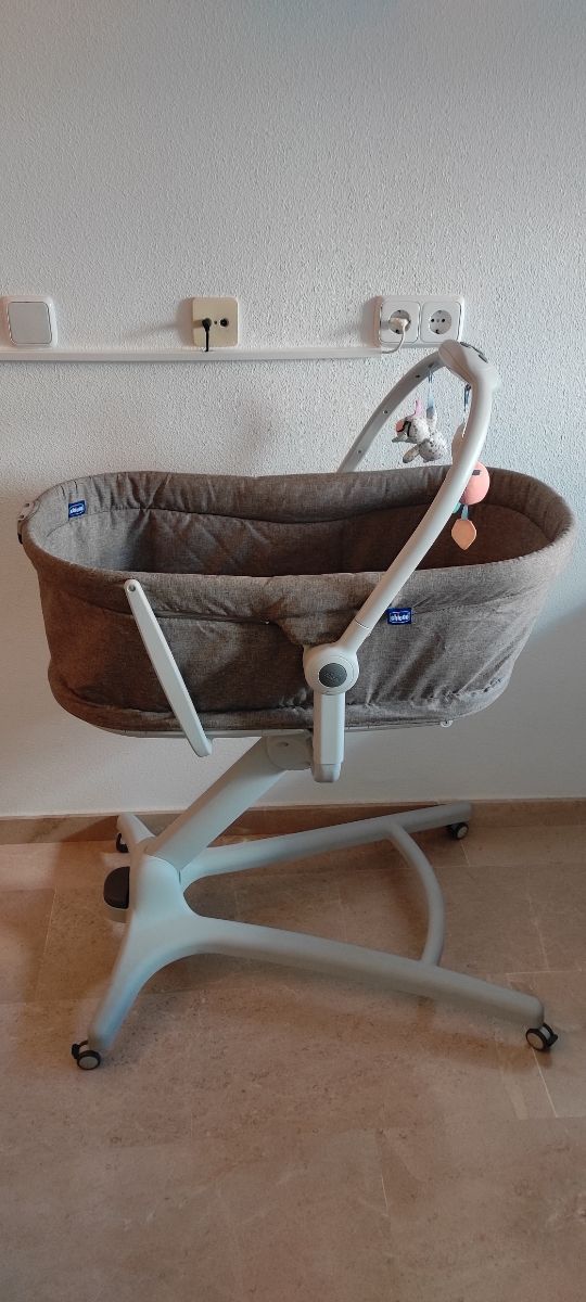 Detalles del productoBaby hug Chicco 3 en 1 (mini cuna convertible en hamaca y trona con una bandeja para comer). Súper práctica ya que tienes 3 productos en 1, según las necesidades del bebé en cada momento. Gracias a sus ruedas, se puede transportar a cualquier estancia de la casa. Sólo recogida, no hago envíos.