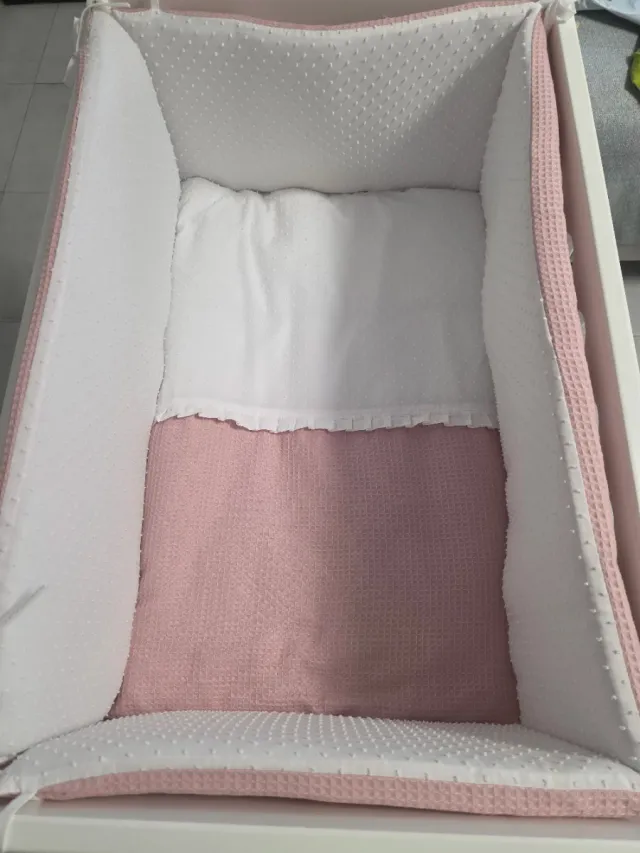 Detalles del productoMini cuna colecho con un diseño dulce en rosa y blanco. Perfecta para tener al bebé cerca.