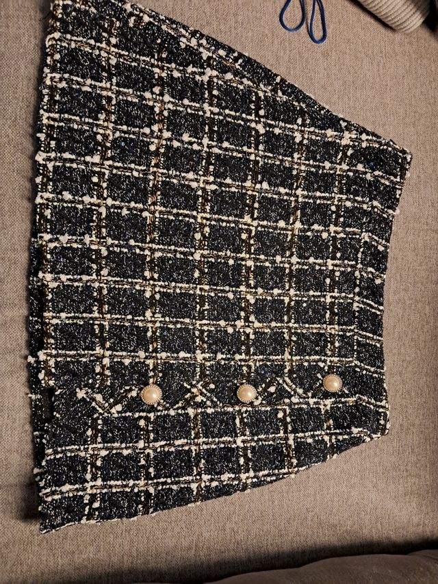 Mini Falda Tweed Azul y Blanca Talla S