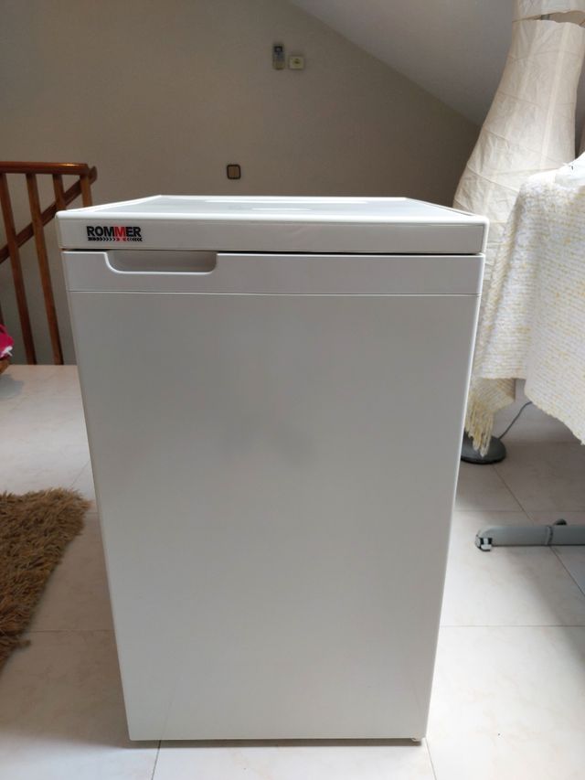 Detalles del productoMini frigorífico de la marca Rommer, ideal para espacios pequeños.
