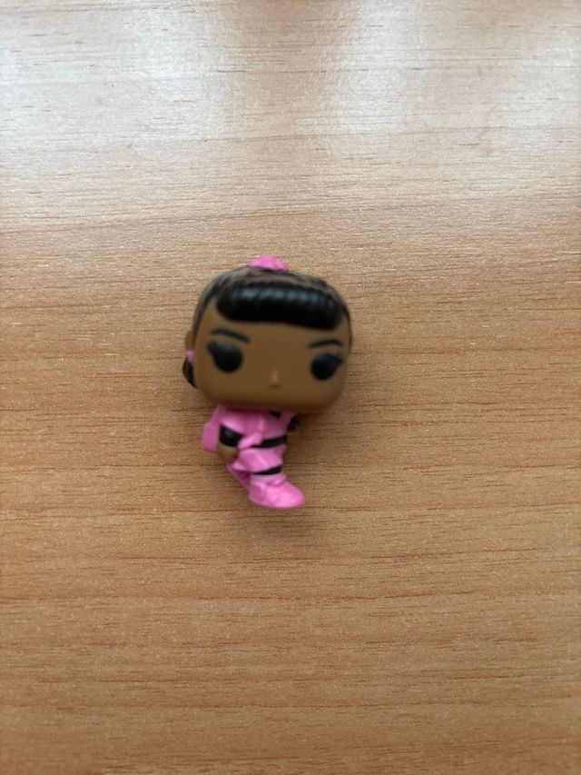 Figura coleccionable estilo Funko Pop. - Diseño en color rosa. - Detalle de pelo recogido y pendientes.