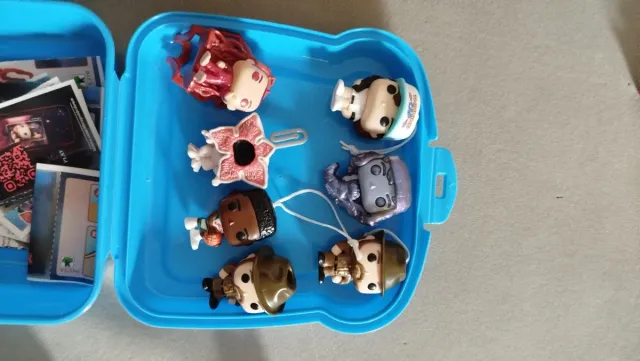 Detalles del productoColección de mini figuras Funko Pop de Stranger Things, provenientes de huevos Kinder Sorpresa. Incluye varios personajes.