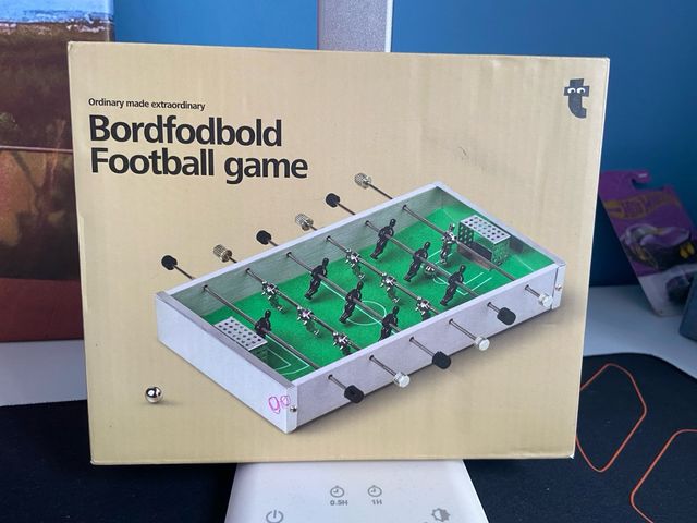 Mini futbolín de mesa con diseño compacto. - Estructura metálica. - Campo de juego verde. - Incluye jugadores y palancas.
